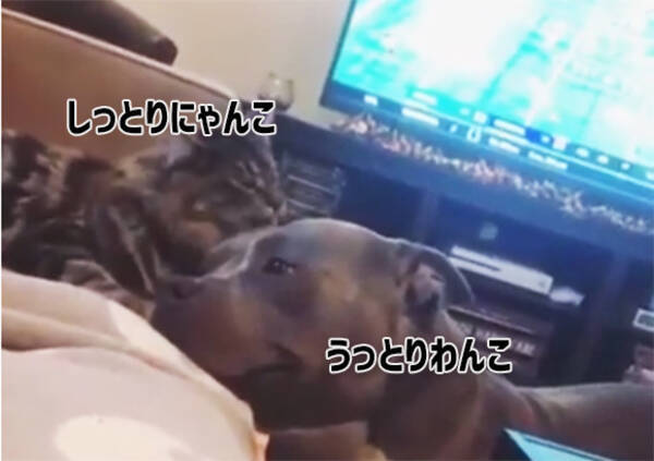 片思い 毛づくろいしてあげるニャンコと不機嫌な顔をするワンコの凸凹コンビが可愛い 年1月14日 エキサイトニュース